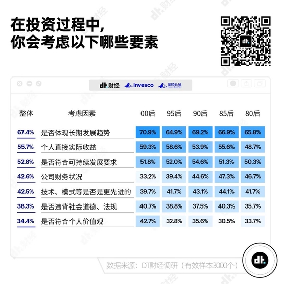 这在一定程度上说明,在投资时Z世代是相对务实和有价值观判断的一代人。